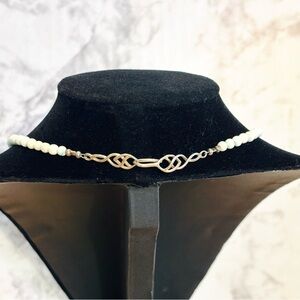 Sterling Silver 925 Rustic Carved Flower Shell Beaded Necklace