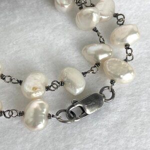 Gorgeous white/cream colored freshwater pearls that can be worn as one long strand or layered up for a shorter look. This strand has a dark oxidization of the sterling that could be polished but I left it up to the buyer as it provides a nice contrast to the pearls.