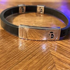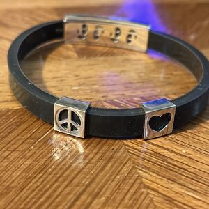 Sterling Silver .925 Slide Charm Rubber Bracelet Peace & Love Heart Brand F 7”