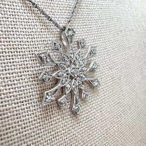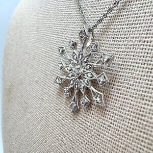 Sterling Silver 925 Snowflake Illusion Stone Pendant Necklace Size 18" Length