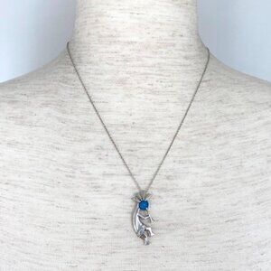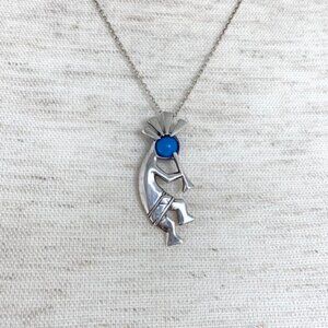 Sterling Silver 925 Southwest Kokopelli Faux Turquoise Pendant Necklace 18"