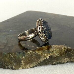 Sterling Silver 925 Southwest Style Bezel Set Oval Lapis Cabochon Ring Sz 6