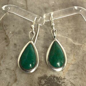 Sterling Silver 925 Southwest Style Chrysocolla Teardrop Dangle Drop Earrings