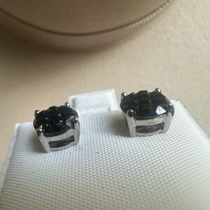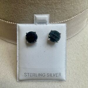 Elegant sterling silver stud earrings featuring a striking black cut onyx design. Perfect for adding a touch of sophistication to any outfit.