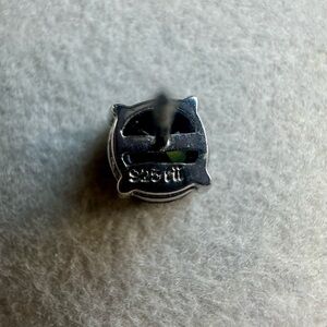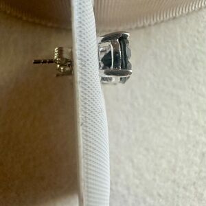 Round stone in a 4 prong sterling silver setting. The stone is larger than my carat diamond ring. I have a scale but do not know how to measure the gem size. The stone is just over a quarter of an inch in diameter. See photos for a better idea of size and intricate details.