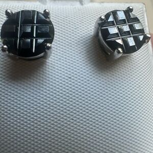 Sterling Silver 925 Stamped Black Onyx Stud Earrings New! Unique Cut