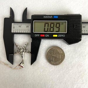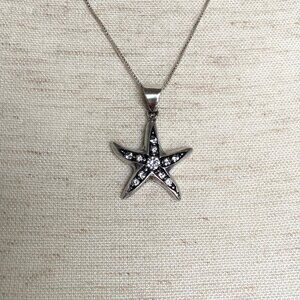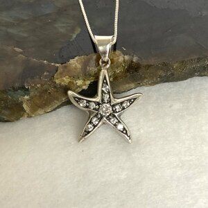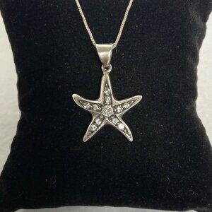 Sterling Silver 925 Starfish Seastar Cubic Zirconia Pendant Necklace 18" Chain