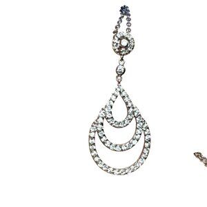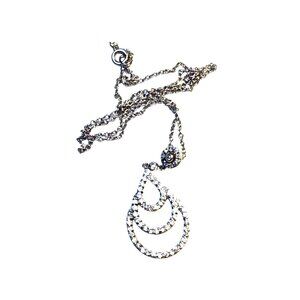Sterling Silver 925 Teardrop Rhinestone Pendant Necklace Dainty Vintage Look