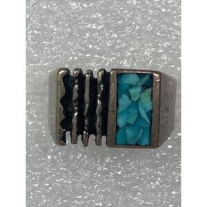 Sterling Silver 925 Tested Men Women Square Ring Blue Turquoise Inlay Size 9,75 Item was not cleaned prior sale. Rare Navajo inspired style ring. (L6)