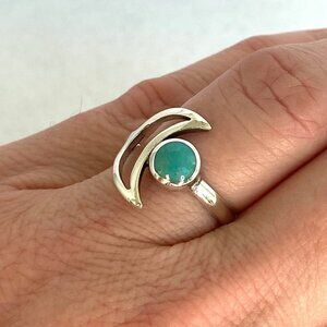 Sterling Silver 925 Thai Crescent Moon Round Turquoise Celestial Ring Sz 6.5 NEW