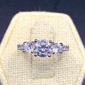 Sterling Silver 925 Three Stone Cubic Zirconia Prong set Engagement Style Sz 7