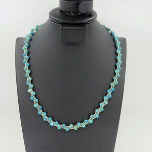 Sterling Silver 925 Turquoise Beaded Necklace Twist Chain Adjustable Clasp
