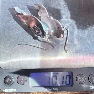 Sterling Silver 925 Turquoise Bezel Set Leaf Design Dangle Earrings