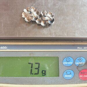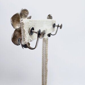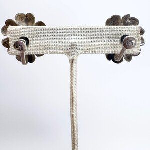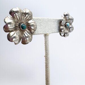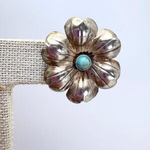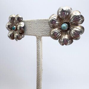 Sterling Silver 925 Turquoise Puffed Flower Screw Back Earrings Size 1" Length