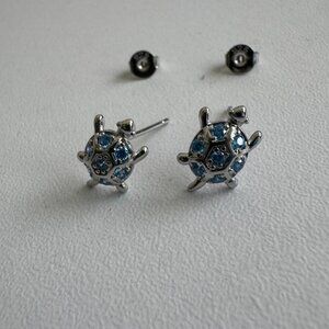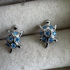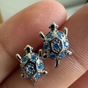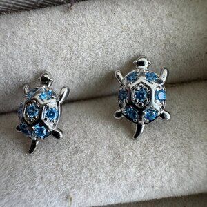 Sterling Silver 925 Turtle Earrings with Blue Crystals – Ocean Inspired Studs