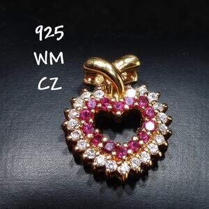 Sterling Silver 925 WM Heart Pendant Rubies & CZ Gold Plated Vintage Jewelry