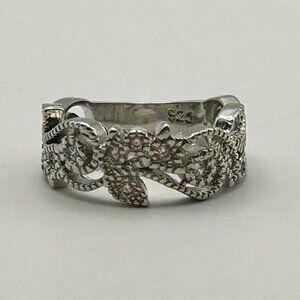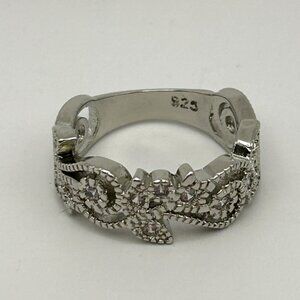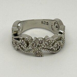 Sterling Silver 925 Wide Band Filigree Ring Clear CZ Accents Size 7
