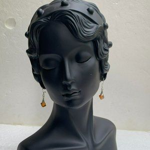 Timeless and sophisticated, these earrings will elevate your style and become a must-have in your jewelry collection. As a birthstone for November, amber holds special significance, making these earrings even more meaningful. Measuring 1 1/4" from top to bottom, with 1/4" cubes and a maker's mark on the ear wire, these high-quality earrings are a true statement piece.