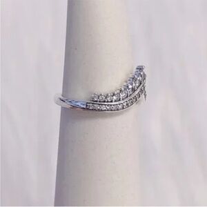 Sterling Silver 925 wedding V Shape crown CZ Cubic Zirconia Ring Sparkly