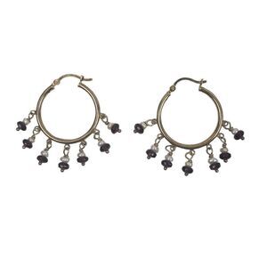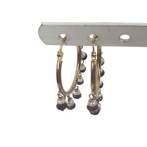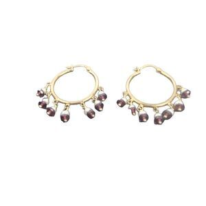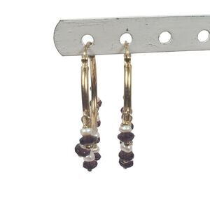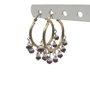 Sterling Silver 925 Gold Wash Vermeil Hoop Pierced Earrings Glass Faux Pearl Purple Glass Beads