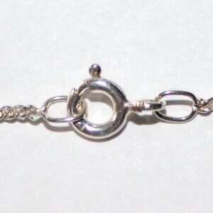 Chain measures 18 inches length, pendant measures 15/16ths of an inch length and 3/16ths of an inch across widest point.