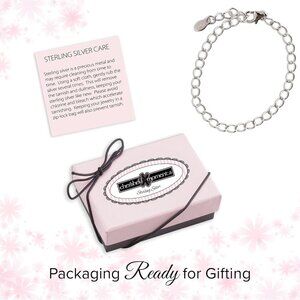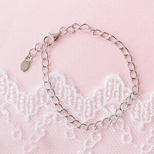 Features: Classic sterling silver link chain with dainty oval links, easy to add your favorite charms. Adjustable for the ideal fit, making it super versatile and comfy. Crafted with hypoallergenic metals and rhodium-plated for durability and safety.