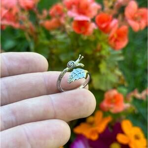 This is a Sterling Silver Adjustable Snail and Leaf Ring. It is made from .925 Sterling Silver.