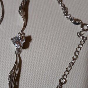 Sterling Silver Ankle Bracelet adorned with a crystal heart This measures 9 1/2 inches long