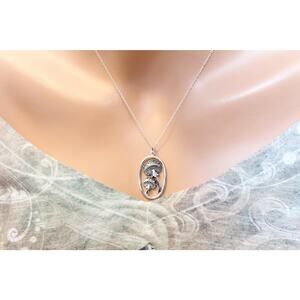 Sterling Silver Agaric Mushroom Charm Oval Necklace, Agaric Mushroom Necklace