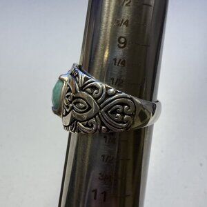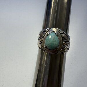 Sterling Silver Amazonite Faceted Ring Size 9.75 Ornate Bali Style Statement