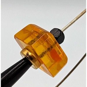 Unique Sterling Silver Amber Brooch Modernist Artist Made Vintage Safety Pin Style Amber, horn, glass, plastic, wood beads Unmarked, tested for silver 14 grams total weight 5.75" long Good vintage condition