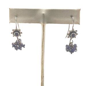 Sterling Silver & Amethyst Cluster Drop Earrings Handmade Artisan Jewelry Bohemi