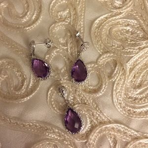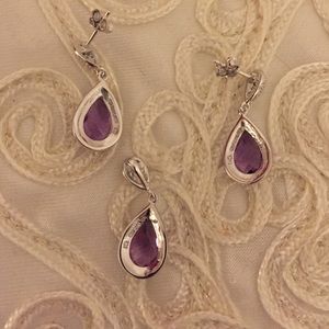New Sterling Silver Earrings and Pendant with Amethyst natural stone and CZ surrounding the stone. No trade, no holding , no off sight payment