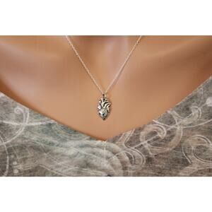 Sterling Silver Anatomical Heart Charm Necklace, Realistic Heart Charm Necklace