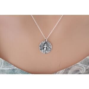 This is a Sterling Silver Ancient Bee Greek Coin Necklace. Both the charm and the necklace are Sterling Silver.