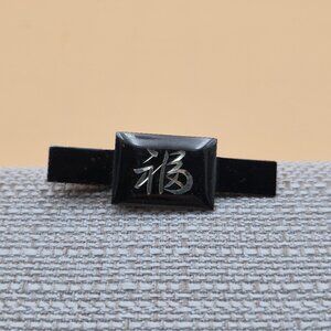 Sterling Silver And 950 Silver Asian Words Tie Clip A5987