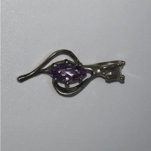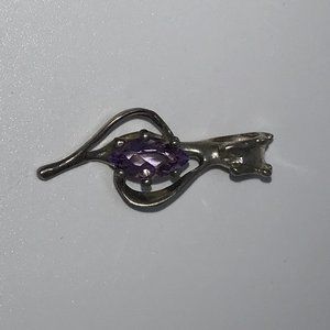 Solid sterling silver pendant with a real amethyst set in the center. Handmade.