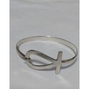 Sterling Silver Ankh Cuff Bangle Bracelet 8.5" Wrist Unisex Vintage