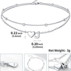 Features: Beautiful layered design with a personalized initial, a heart charm, and a beaded chain. Made from 925 sterling silver, this anklet is shiny, sturdy, and perfect for all-day wear — even in water! The lobster claw clasp makes it easy to put on and keeps it secure during activities.