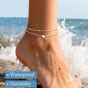 Sterling Silver Anklet Waterproof Adjustable Heart Initial Beaded Foot Jewelry