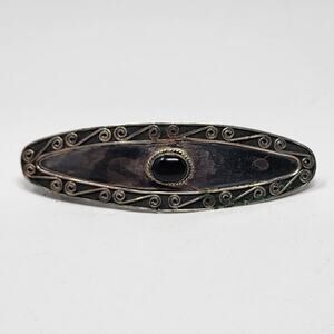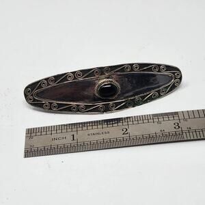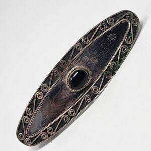 Sterling Silver Antique Vintage Onyx Hair Barrette