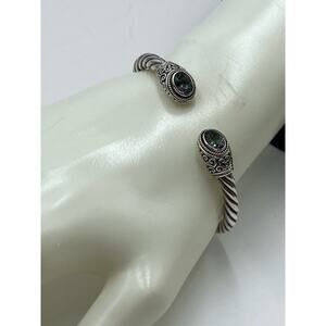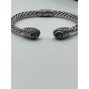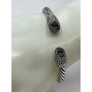 Sterling Silver Artisan 925 Mystic Quartz Balinese Hinge Bangle Bracelet 20g
