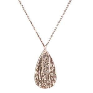Sterling Silver Artisan Textured Tear Drop Marcasite Twig Tag Necklace