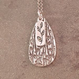 One of a kind handcrafted sterling silver artisan organic bamboo textured tear drop marcasite twig tag pendant necklace. The main pendant piece was made from sterling silver precious metal clay. Tested and confirmed as sterling silver.