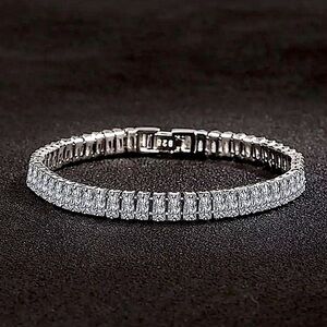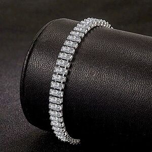 New sterling silver zircon baguette Diamond tennis bracelet. Diamond simulated. Measures 8”