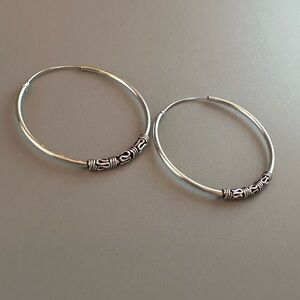 These silver hoop earrings are responsibly sourced, made from conflict-free materials, and free of nickel, lead, and any other unsafe mineral. This is genuine 925 sterling silver. Brand new. Questions? Drop them in the comments. Bundle for a discount on your new Bali hoop earrings. Thank you for browsing my closet and happy poshing to you.