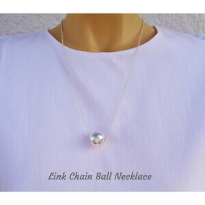 Sterling Silver Ball Necklace, Solid 925 Silver, Cable Link Chain, Long Chain