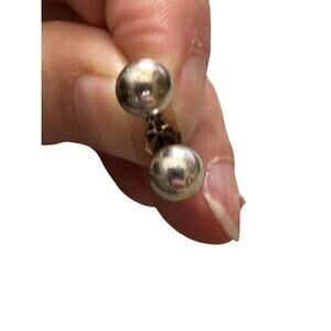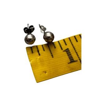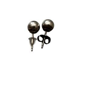 These simple little sterling silver studs are great for everyday wear. They're vintage sterling silver "pearls" that are about 4mm in size. One of the silver backs is missing and has been replaced with a rubber backing. They're in good condition with normal patina for age.