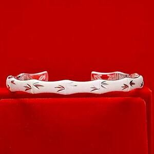 STERLING SILVER BAMBOO ENGRAVED CUFF BANGLE BRACELET