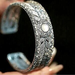 Sterling silver pattern design vintage style opal stone wide cuff bangle bracelet 22 piece set includes braided, throwing silver bracelet